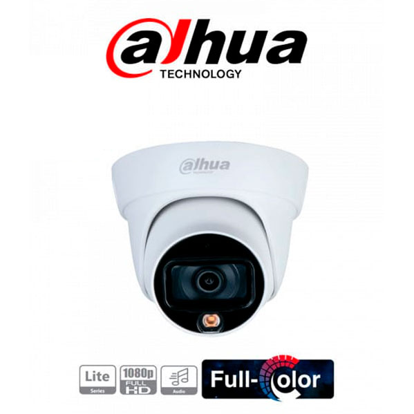 Cámara Dahua tipo Domo 2MP 1080p Full Color y micrófono incorporado.