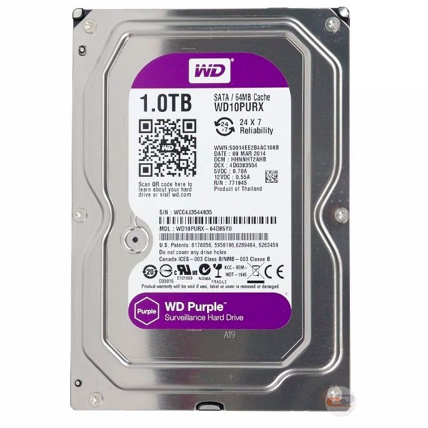 Disco Duro WD 1TB etiqueta púrpura, especial para Sistemas de Vídeo Vigilancia.